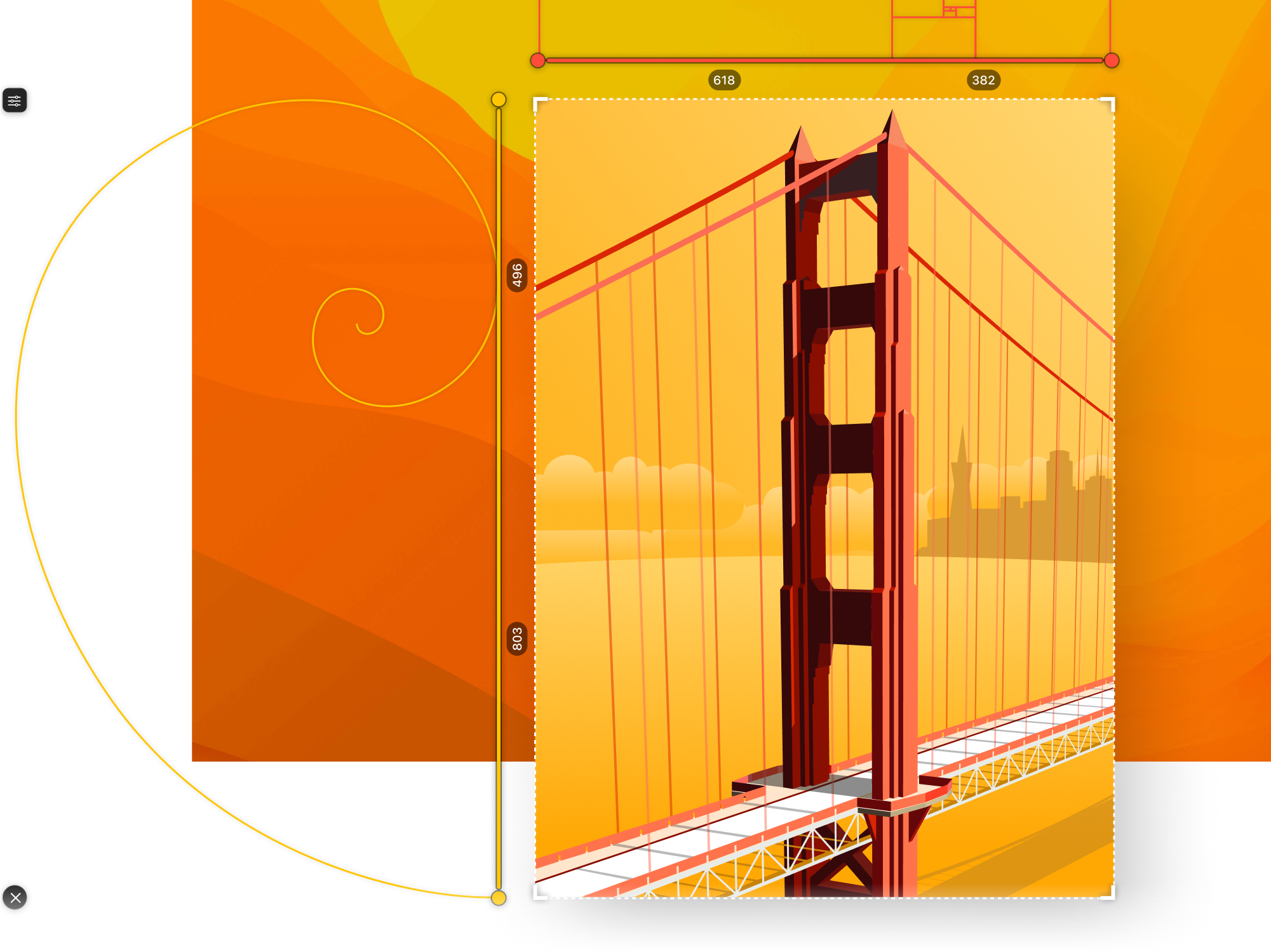 Golden rule of thirds, regular and diagonal rule of thirds, baroque proportions… A host of Goldie rulers that overlay on your Mac screen.